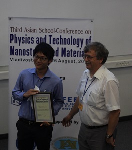 ロシアにおける国際会議"4th Asian School-Conference on Physics and Tecnology of Nanostructured Materials"にM2:3人が参加し,2人が口頭発表,1人がポスター発表を行いました.瀬戸島君がYoung scientist Awardを受賞しました!