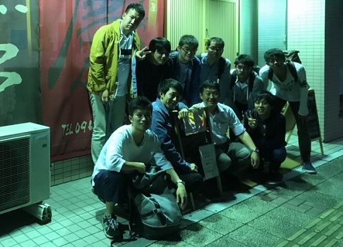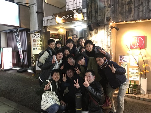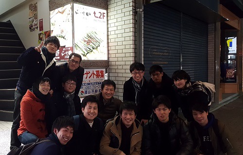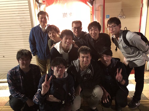 研究室のOBを交えて,天神で飲み会を行いました.