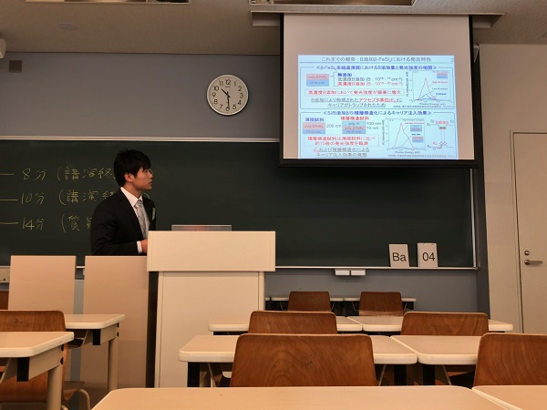 M1:4人が発表しました.また,GaN開発の3名の教授によるノーベル賞受賞記念講演を拝聴しました.