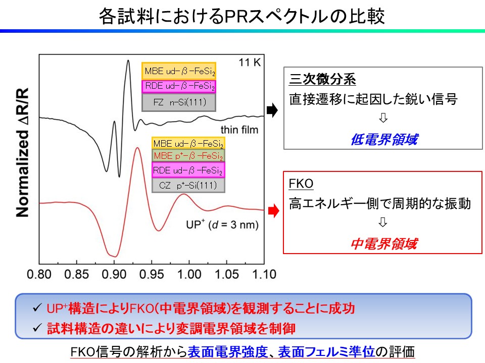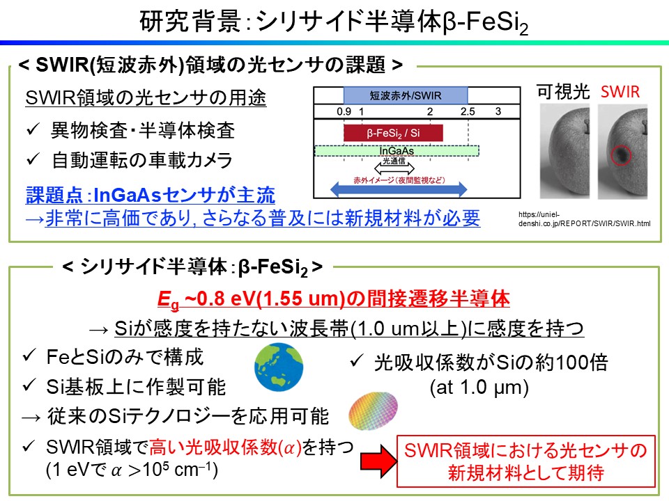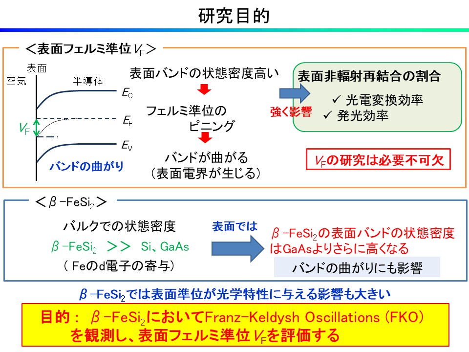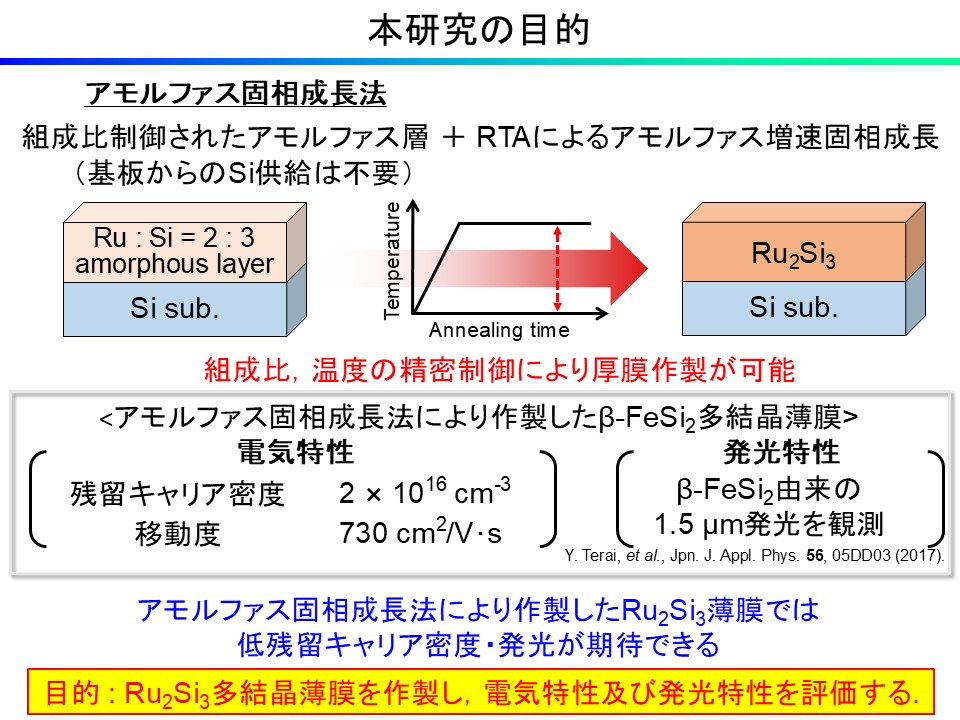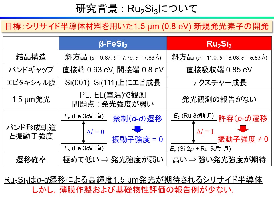Knudsen cell (Kセル)中の原料を加熱することによって分子線を発生させ,基板上に蒸着させる試料作製方法です.融点の高いSi原料は,熱電子を衝突させることによって分子線を発生させます.チャンバー内の不純物を超高真空(~10-10 Torr)まで排除した清浄環境下で成膜を行うことから,残留不純物の少ない高純度な膜を作製することが可能です.また,電子線回折を利用したRHEED像の観察により成膜中のその場観察が可能です.本研究室では,適切な条件下でSi基板上にFeとSiを同時蒸着させることにより,β-FeSi2エピタキシャル膜を作製する技術を確立しています.
